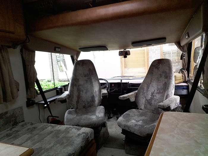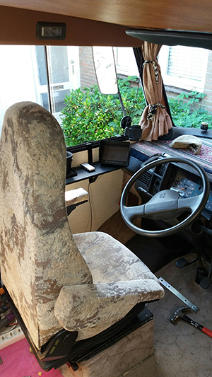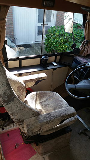 Om wat meer ruimte in de camper te hebben en tijdens koude of regenachtige dagen heb ik de bestuurdersstoel draaibaar gemaakt.