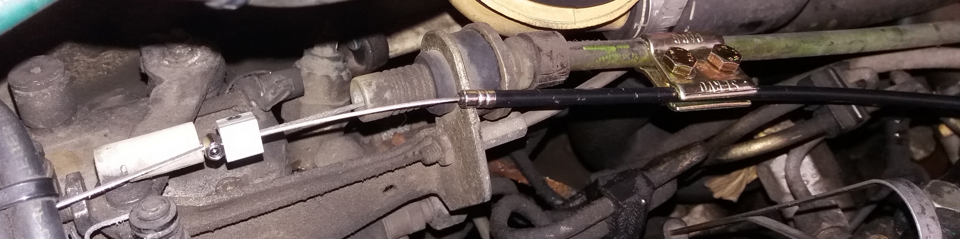 Op de camping de motorkap er af gehaald en gekeken naar de gaskabel van de CC.